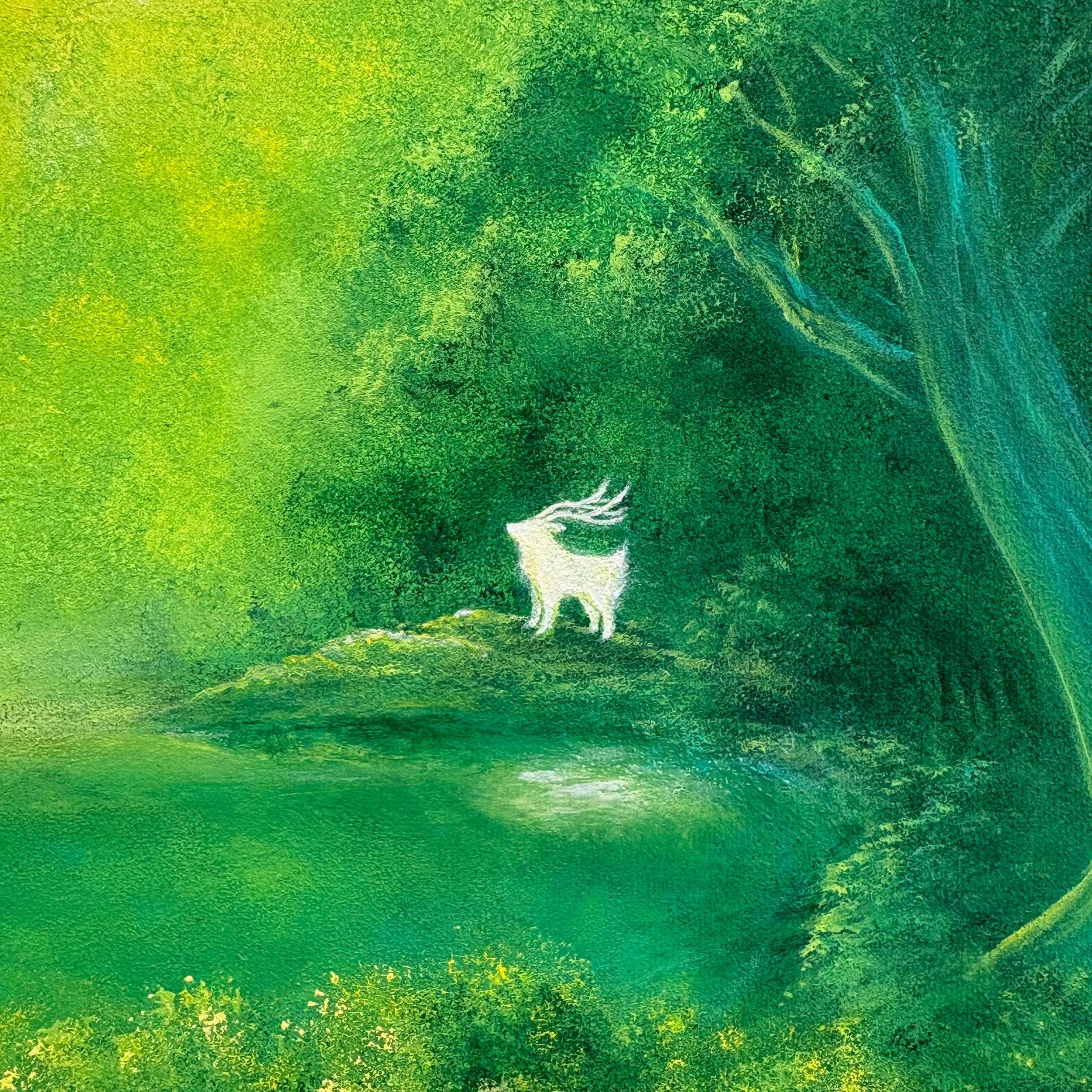 2026年3月に描き上がったばかりの新作です。静かな森と豊かな水を描いた生き生きとした緑のグラデーションが心に落ち着きを与えてくれます。一点もののため他にはない貴重さがあり、お部屋やオフィスのインテリアとして空間に新しいエネルギーを取り入れたい方へおすすめの作品です。