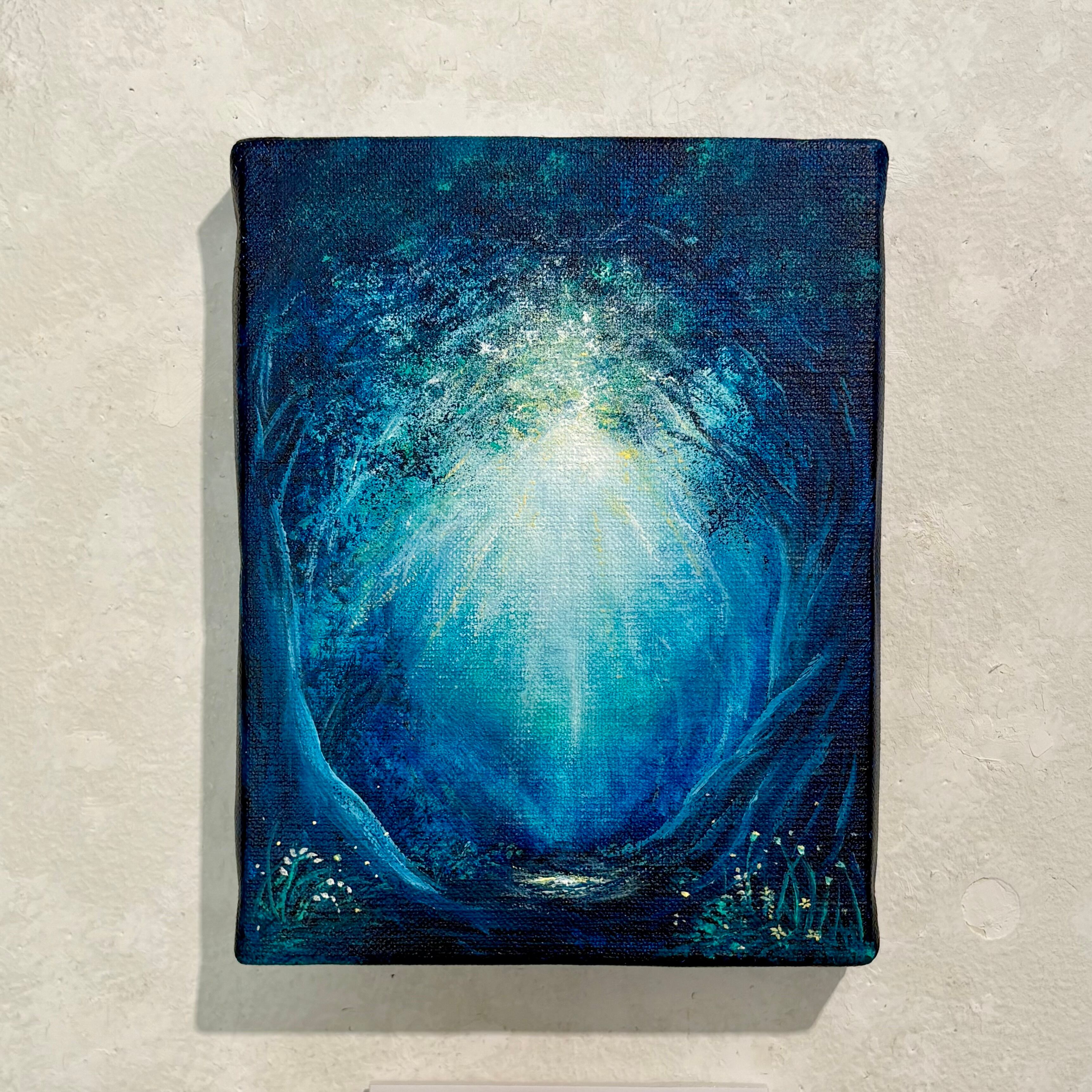 2026年3月に描き上がったばかりの新作です。まるで水の中にいるような、森の中にいるような、不思議な世界へ誘います。一点もののため他にはない貴重さがあり、お部屋やオフィスのインテリアとして飾ることでリラックスを深めたい方へおすすめの作品です。