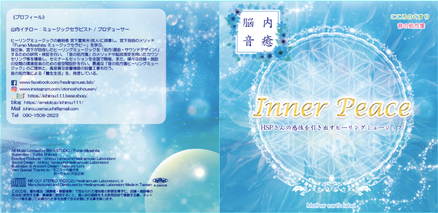 CD「Inner Peace」が、HSPの皆さまの日々の暮らしで、お部屋で、交通機関の移動中、外出先、仕事場などでお聞き頂き、「いやな音」「きらいな音」「気になる音」が緩和され、心地よくお過ごしいただけるようになれば幸いです♬